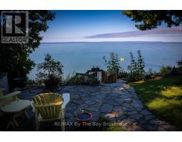 Perched majestically on the stunning shores of Georgian Bay this 37' Waterfront custom built all brick home with 4+ bedroom is calling your name. The charming rocky rustic landscape of this special lifestyle 80' x 214' property returns the beauty with muskoka-like crystal clear waters, panoramic views across the bay to Blue Mountain and breathtaking sunsets that will mesmerize you from the moment you visit. The cascading multiple decking with direct water access makes this home different than all others and takes you to a playful place of boating, swimming or outdoor entertaining with friends and family meanwhile as you transcend to inside the home it equally matches with its 3,400 sq ft of luxury modern living. The well-designed open concept main floor includes many quality features such as wide-plank oak flooring throughout, main floor bedroom, new upgraded bathroom, expansive panoramic windows from every angle and a stunning chefs kitchen with beautiful custom cabinetry, quartz counter tops, large eat up island for entertaining and an impressive Wolfe range with 4 burners and griddle. Enjoy the dining and living room space with gorgeous views of the blue waters of Georgian Bay along with the bright 4 season sunroom. The quality continues to the second floor with the large primary suite with large windows overlooking the bay with a stunning upgraded 4pc spa-like bath with heated floors and large walk in closet. Additional guest bedrooms and unique space for office/den or art studio. Fully finished lower level adds extra living space for so many options including workshop, gym area and family room. Additional highlights include oversized 2 car garage with inside entry, new garden shed and professionally landscaped grounds. Whether it be year-round living or a dream vacation home this property blends modern luxury with natural beauty and is still within close proximity to all amenities of both Wasaga Beach and Tiny Township. (id:12220)