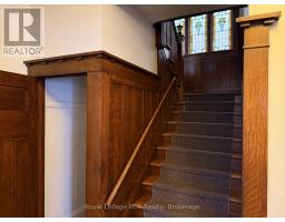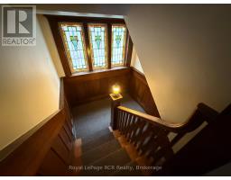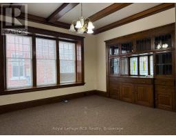Elegant, charming and well maintained office building with beautiful woodwork and doors intact and recent utility upgrades. Private paved rear parking lot with room for 5-6 vehicles. The building offers approximately 2,600 sq.ft finished space with large private offices and a washroom on each level. The 3rd floor attic is unfinished and untapped potential with high ceilings and natural light. Easily divisible for smaller square footage requirement. Furnace with Central Air. Recent roof and electrical panel, eavestrough replaced. Please call your Realtor for more information or to arrange a viewing. (id:12220)